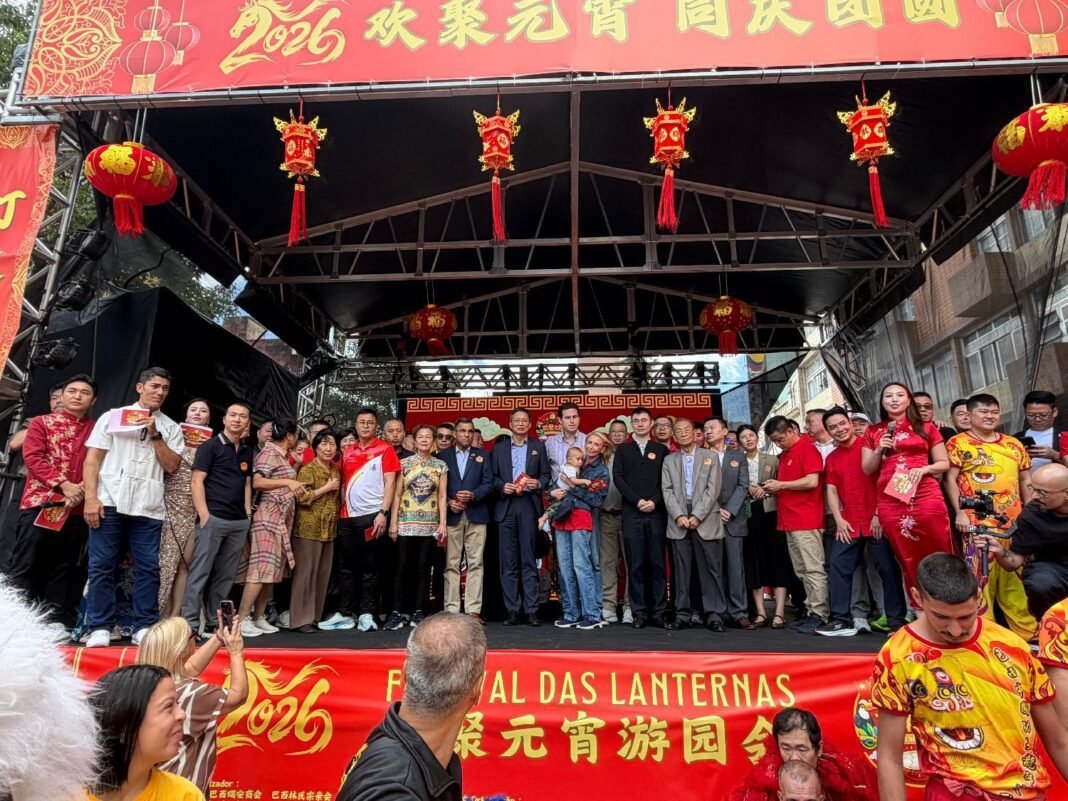 2月28日,圣保罗自由广场张灯结彩,洋溢着喜庆的节日气氛。由圣保罗多家浙籍侨团联合举办的“2026欢聚元宵”大型文化活动在此盛大举行。中国驻圣保罗总领事余鹏、圣保罗市议会议长乔治·奥热、市国际关系局局长安吉拉·甘德拉、市民政局局长恩里科·米萨西、巴西华人协会会长叶周永、监事长王万瑞、活动总召集人叶王永、主办侨团负责人张海群、季奇德、娄建权、林伟萍、邱垚伟、李锦辉、孙总敏、章晓红、郑贵勇、留永明、诸诗琦、吴凌云、李青霞、阮海东、周中、徐卫国、朱军勇及圣保罗华人华侨与巴西民众欢聚一堂,共庆元宵佳节。