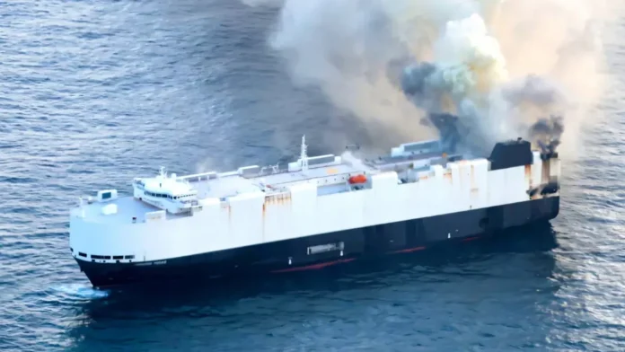 这起事件发生在6月初,Morning Midas号货船原定前往墨西哥,船上装载了多款中国制造的汽车。火灾从船上发动后,船员尝试扑灭火焰但未能成功,最终被迫撤离。此后,船只漂浮在太平洋,距离最近的阿拉斯加岛屿约480公里。根据报道,船上包含来自中国的知名品牌如GWM和奇瑞的车辆,其中还包括约800辆电动汽车。