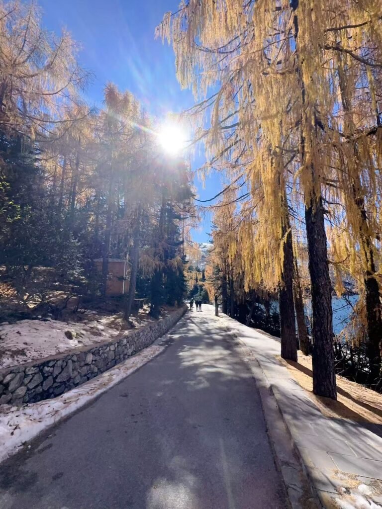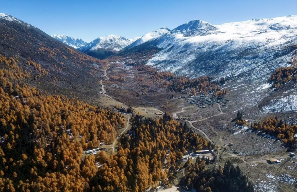 木格措,藏语意为“野人海”,是《康定情歌》的发源地。深秋时节,云雾在山谷间游走,湖水清澈如镜,倒映着皑皑雪峰与金黄林海。游客漫步于栈道之上,聆听风声与水声的交织,仿佛置身诗意画卷。