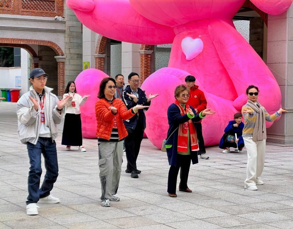 随后,苏君玉与弟子共同演示了永春白鹤拳十八式,招招连贯,气韵生动,引来现场阵阵掌声。不少媒体代表兴致盎然,主动上前学习基本掌法。苏君玉在前示范,弟子们则穿梭其间,细心纠正嘉宾动作,让每一位体验者都能切身感受拳法中的力度与韵律。