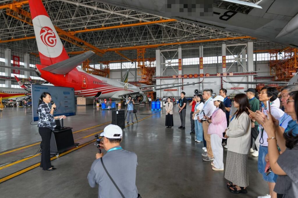 11日,“开放新海南·活力自贸港——行走中国·2025海外华文媒体海南行”活动走进位于海口的海南自贸港一站式飞机维修产业基地。来自十多个国家和地区的二十家境外华文媒体代表走访参观,了解这座“飞机医院”的成长历程,见证“自贸港速度”和开放新活力。