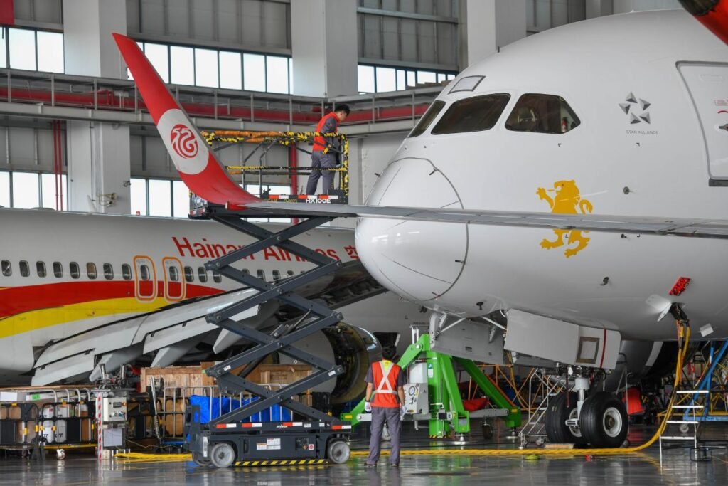 得益于海南自贸港独特的税收制度,如“零关税”“双15%”所得税等政策红利,企业可节省约10%至15%的维修成本,在降低开支的同时提升效率。目前,基地喷漆效率已位列全球第一:窄体机6天即可完成整机喷漆,宽体机则控制在12至15天内完成。