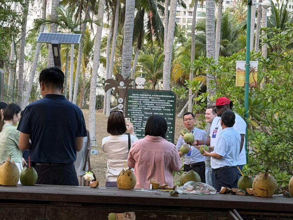 对海外华媒人而言,这里是一个“可体验、可传播、可共情”的海南故事。澳大利亚澳华电视传媒董事长 Ren Chuanggong 感叹道,园区汇集全球诸多椰子品种,既是一座活态植物基因库,也是一部立体的热带植物百科全书。