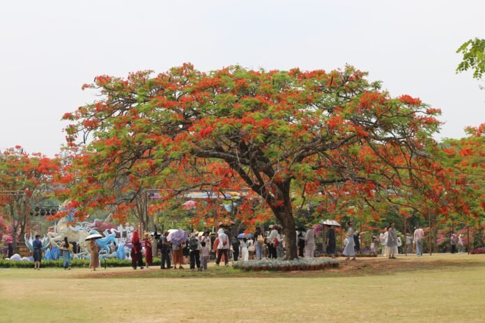 巴中通讯社4月25日云南西双版纳讯 阳光穿过高大的棕榈叶,在地面洒下斑驳的光影。空气中带着湿润的温度,也夹杂着淡淡的花香。走进西双版纳热带花卉园,四季的界限变得模糊——花一直在开,绿意从未退场。